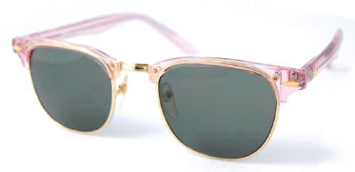 Lenses are green with UV Protection. This translucent pink frame is really unique.