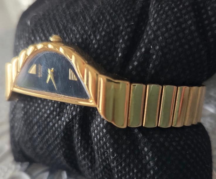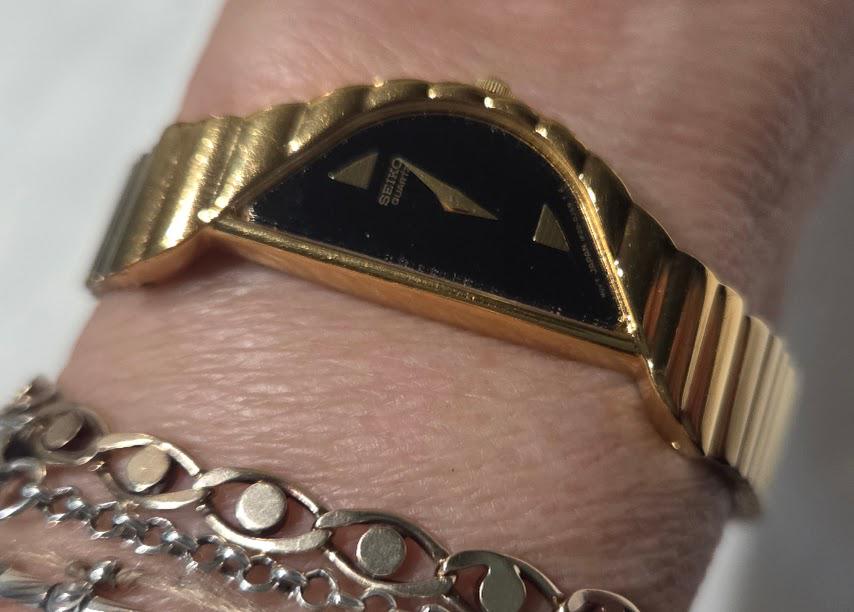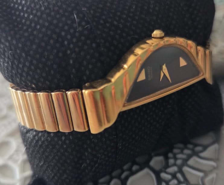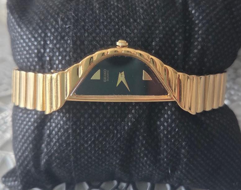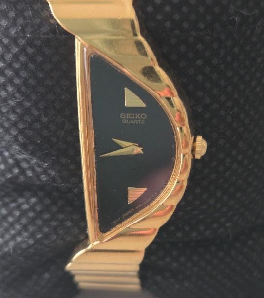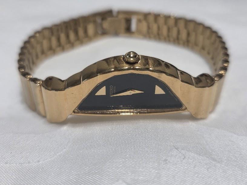 This Seiko half-moon asymmetrical quartz watch is in very good vintage condition.