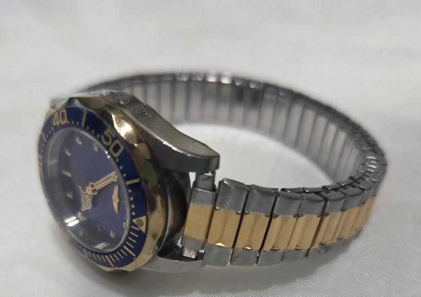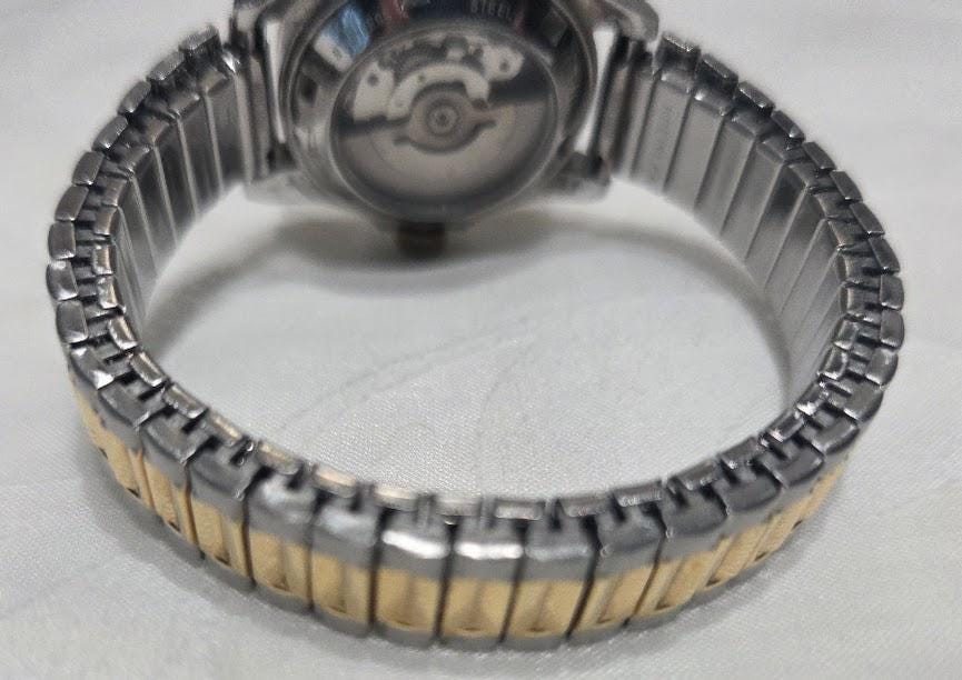 Stainless steel stretch two-tone bracelet. Will fit a 7-inch wrist.