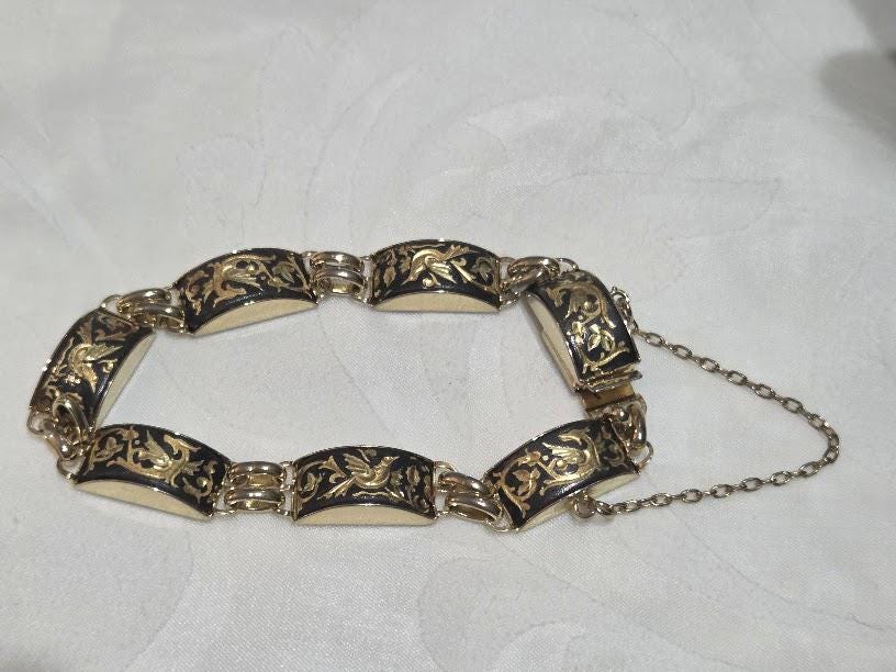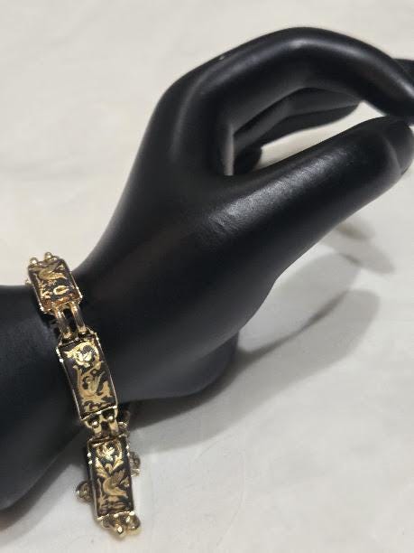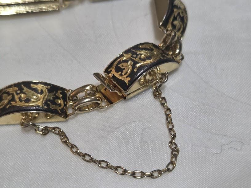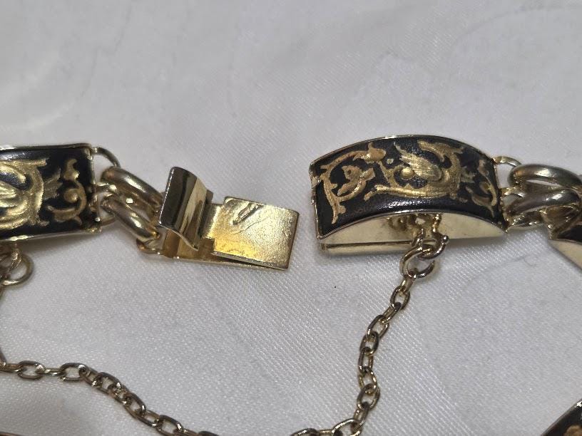 This gold tone Damascene Bracelet is in excellent vintage condition.
