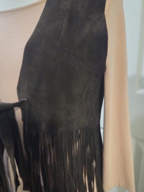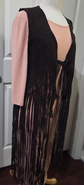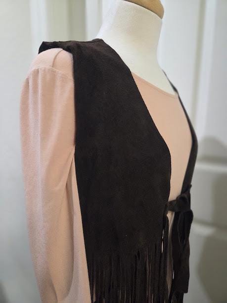 This suede vest with long fringe is in very good vintage condition.