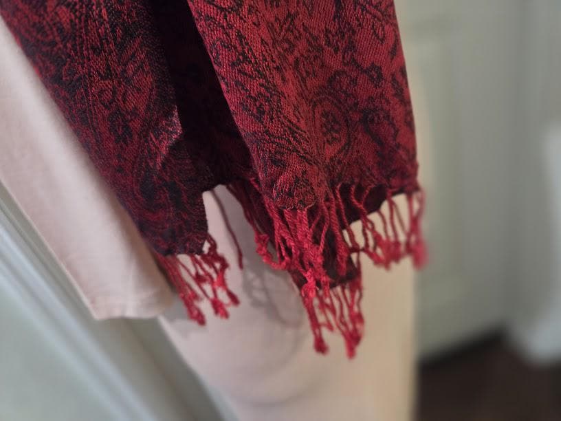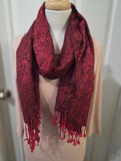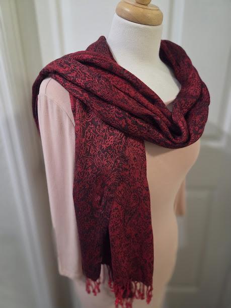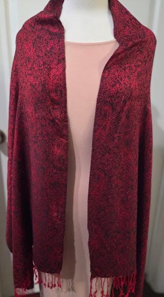 Red, black paisley design.