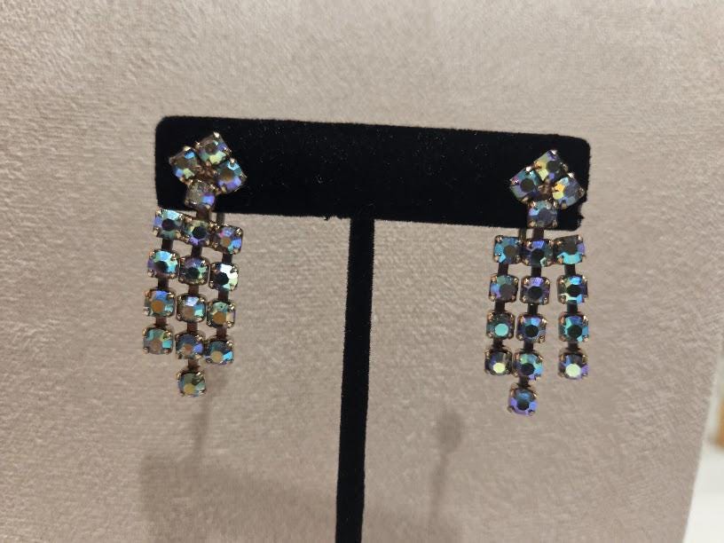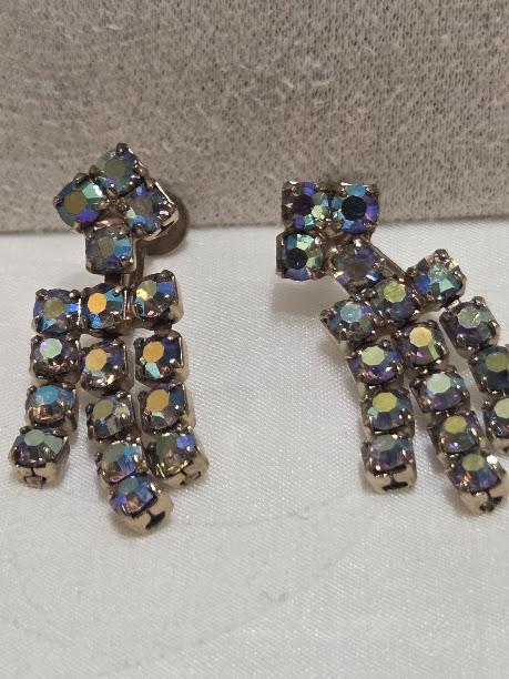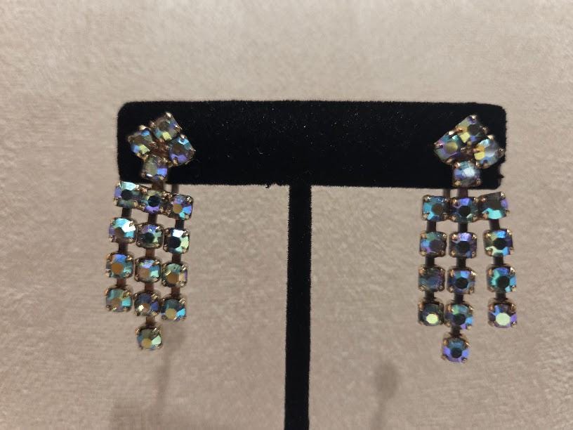 These beautiful dangling aurora borealis rhinestone earrings are in very good vintage condition.
