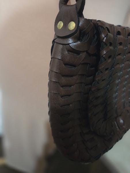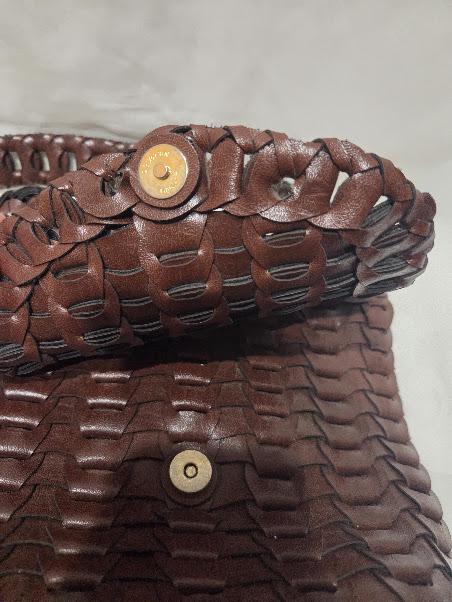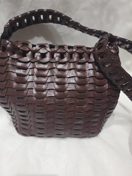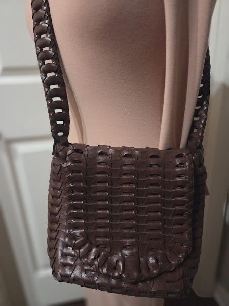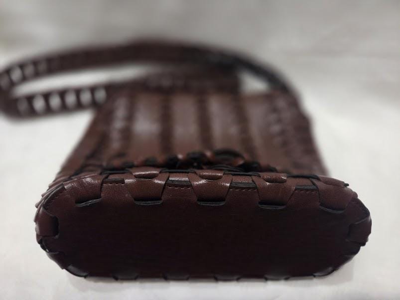 Cross body strap is 1 1/2 inches thick and 20 inches long (hanging from