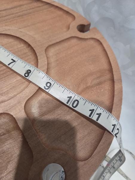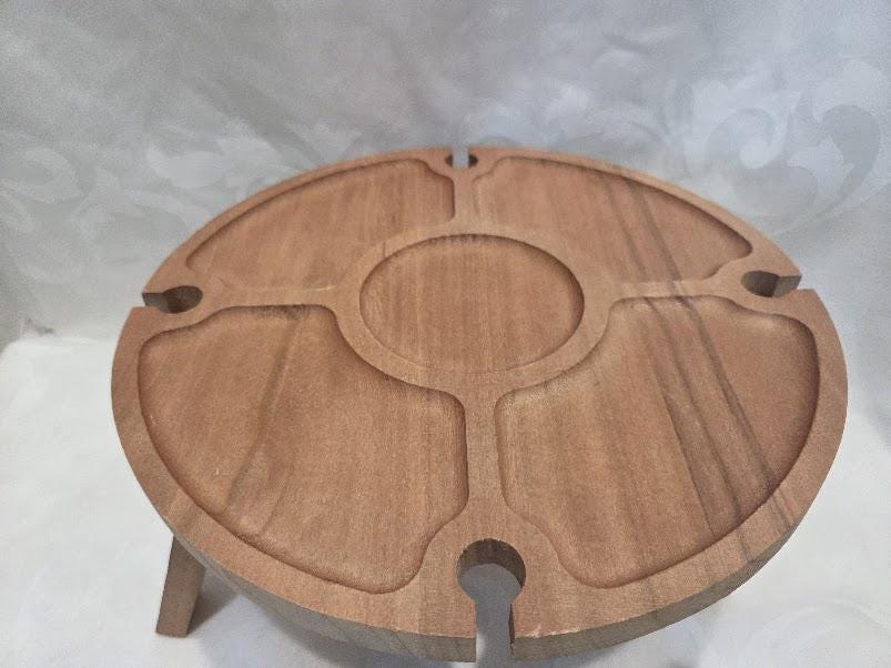 12 inches round serving platter with four slots to hold wine glasses.