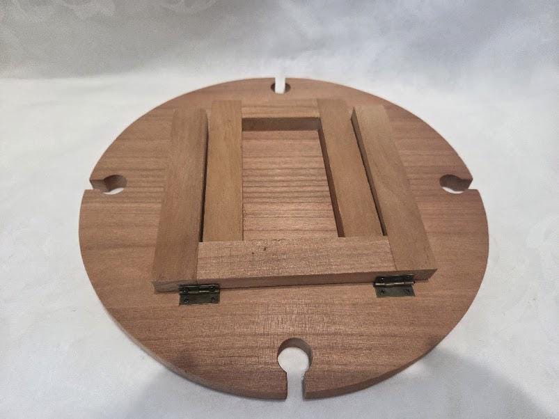 This small round wooden serving tray is in excellent condition.