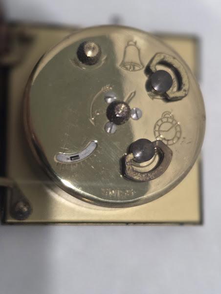 Measures: 1 1/4 X 2 1/4 square clock. Case: 3 1/4 inches X 3 inches