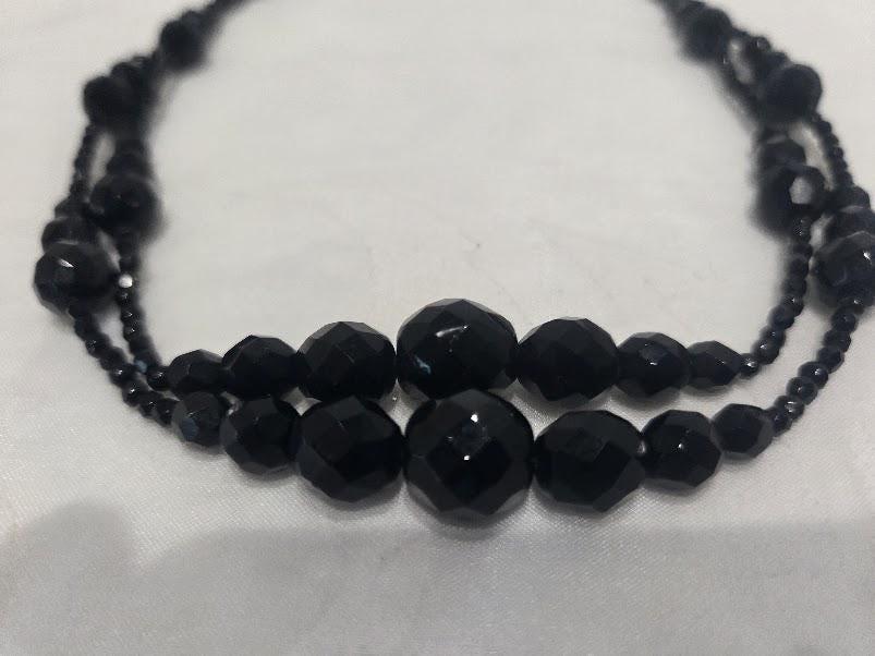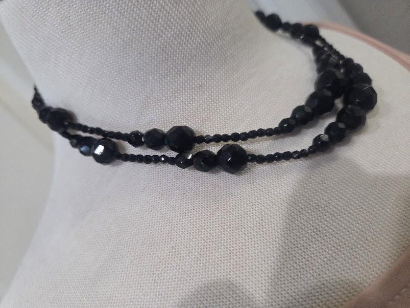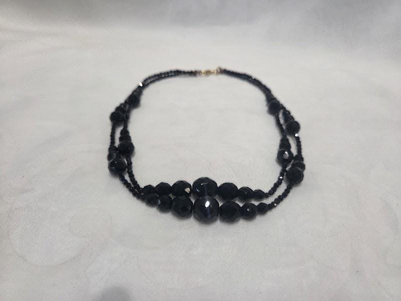 This black faceted beaded chocker necklace is in very good vintage condition.