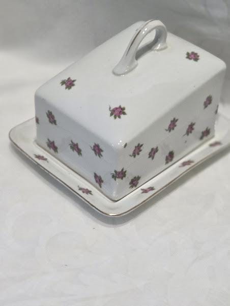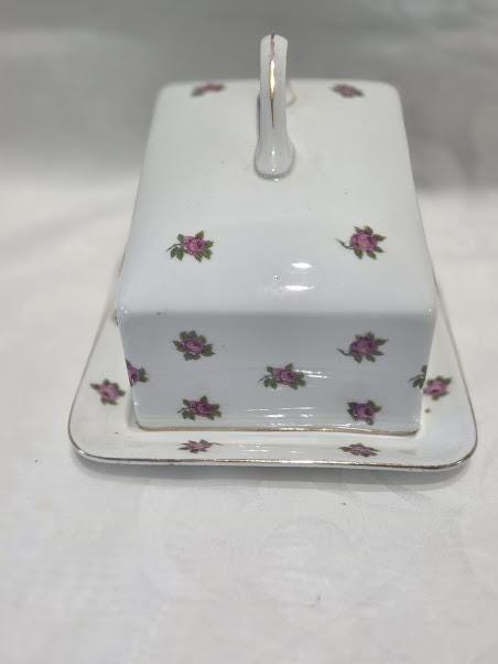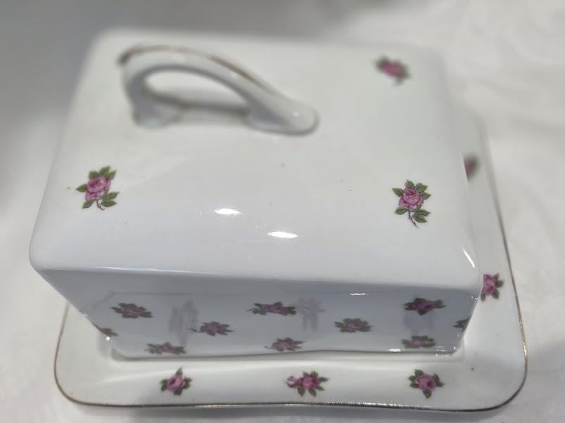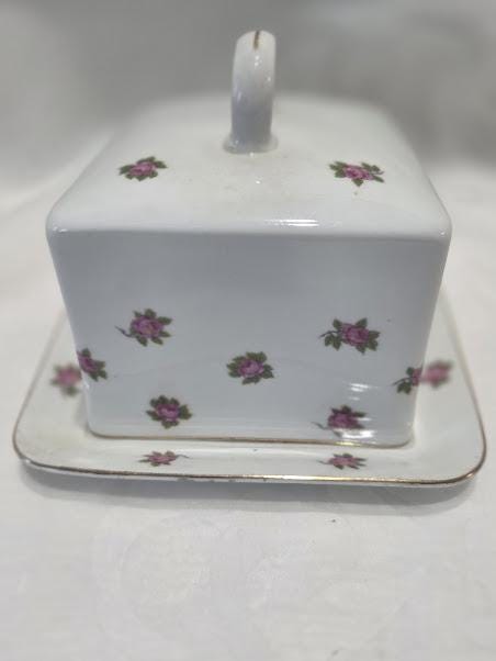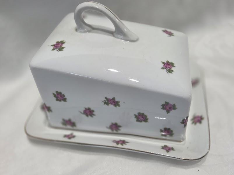 This porcelain butter dish is in excellent vintage condition.