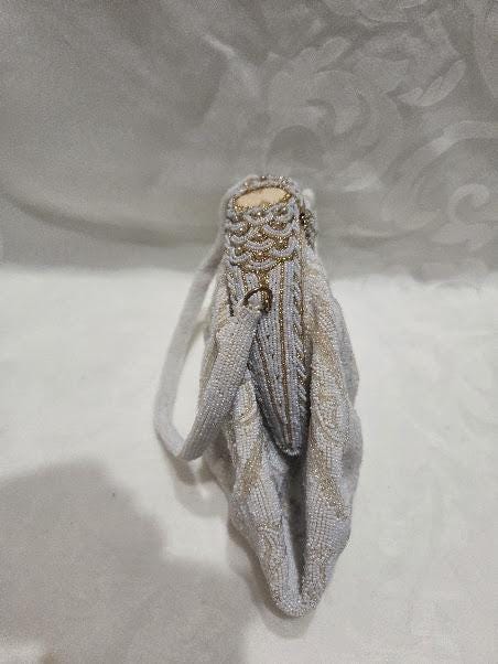 One mirror pocket (no mirror) Beaded wrist handle hangs about 6 inches from wrist.