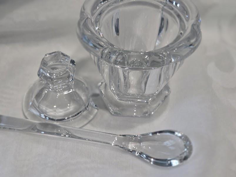 This Baccarat crystal jam/honey jar is in excellent vintage condition.