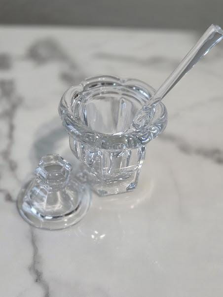 Also used as a mustard jar with the glass spoon.