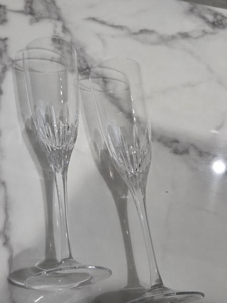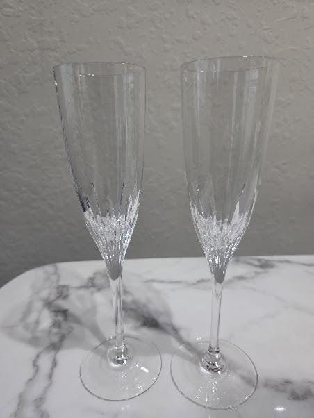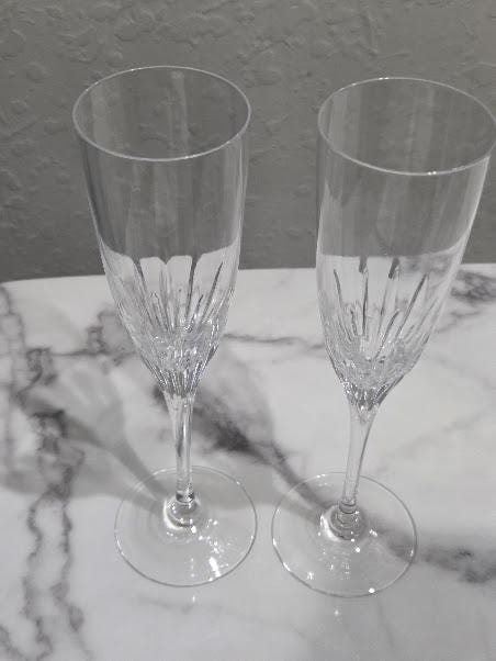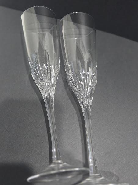 These Waterford crystal champagne flutes are in very good vintage condition.