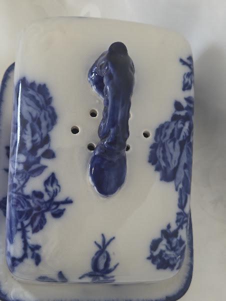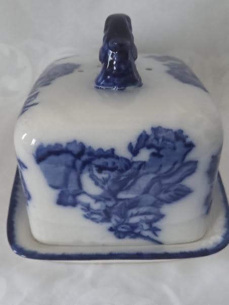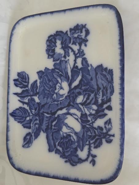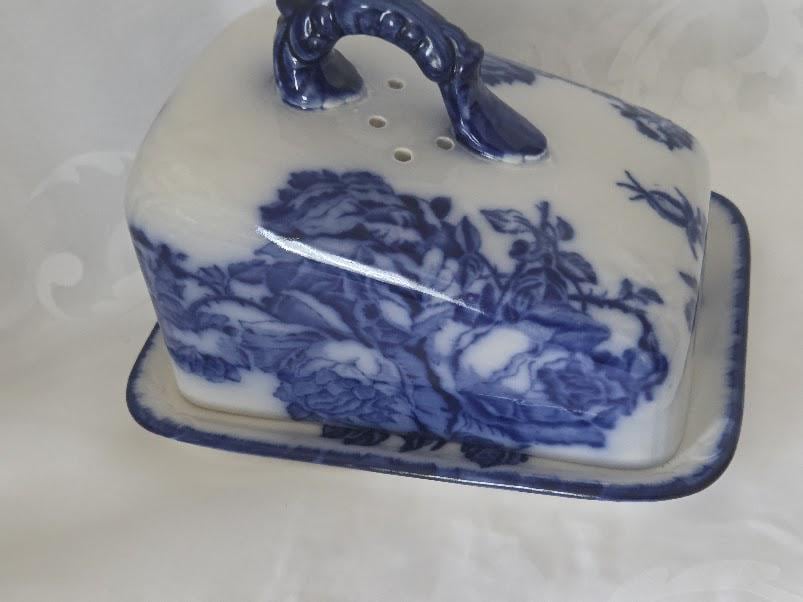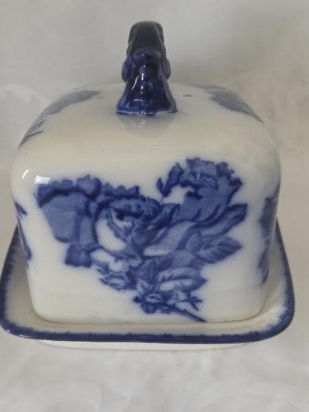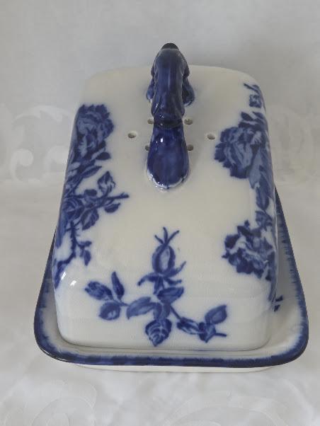 This beautiful blue and white Rose Butter or Cheese Dish is in Excellent antique condition.