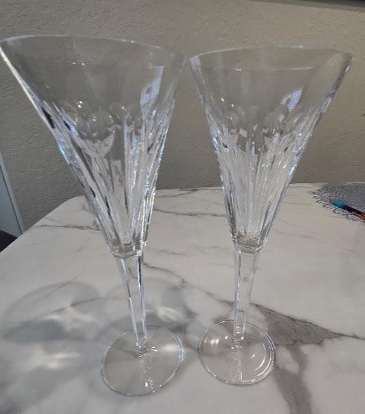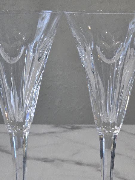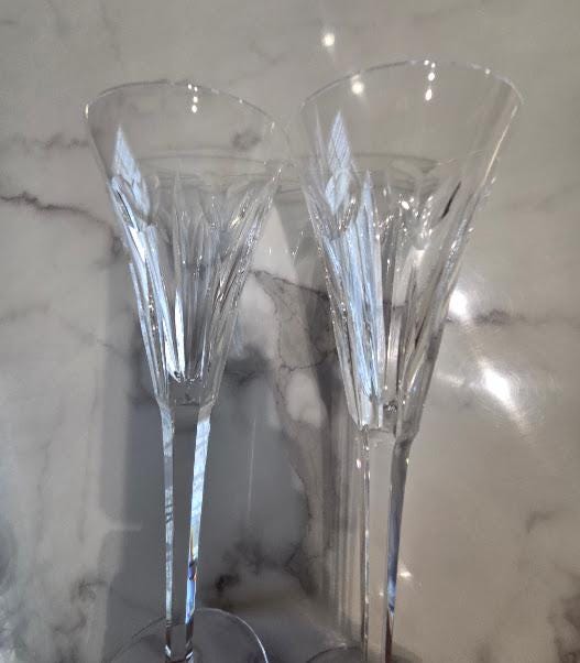 The Waterford Crystal Champagne flute glasses are in excellent vintage condition.