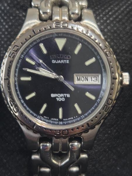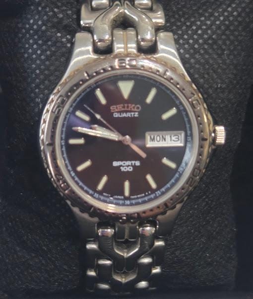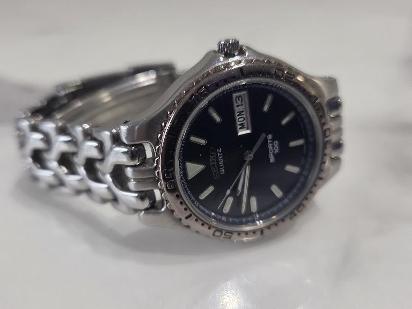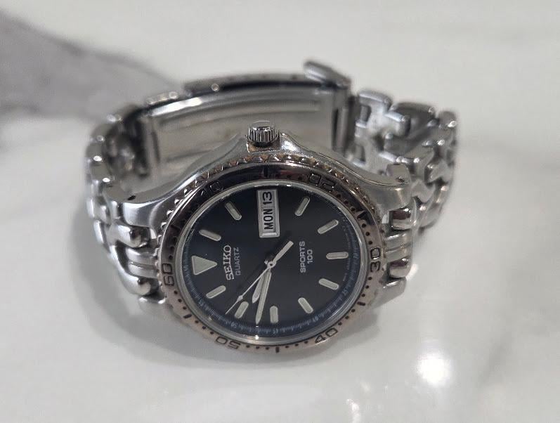 This Seiko sports 100 Quartz watch is in very good vintage condition.
