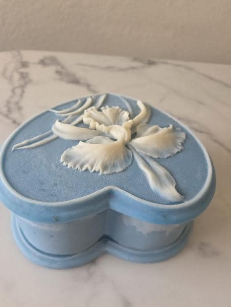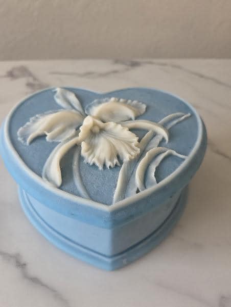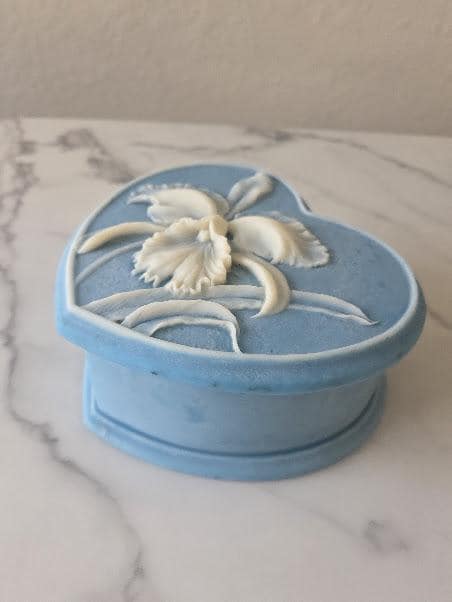 This Heart shaped stone jewelry box is in very good vintage condition.