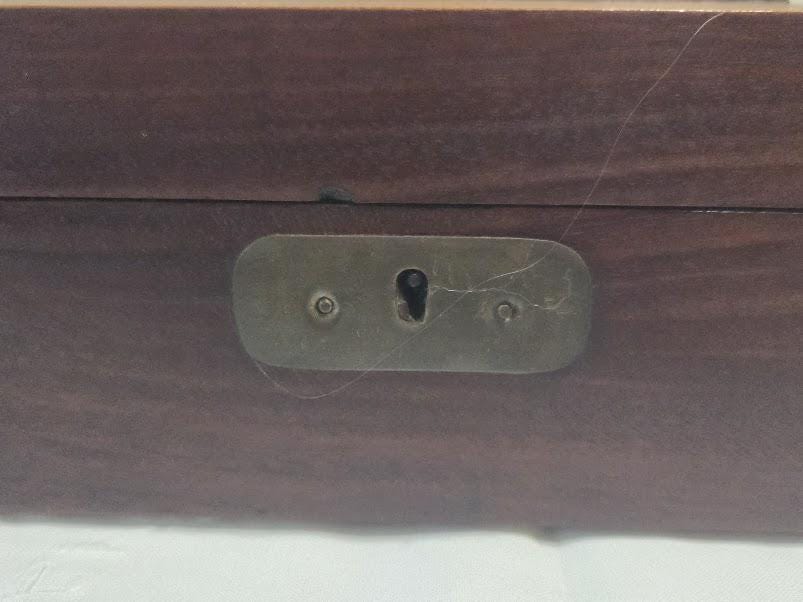 Box is very clean inside and out. Has two slight scratches on Inlay top Lid. (Can be seen in pictures)