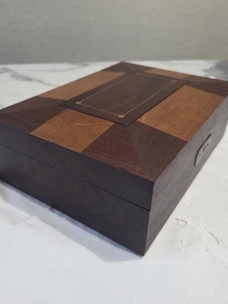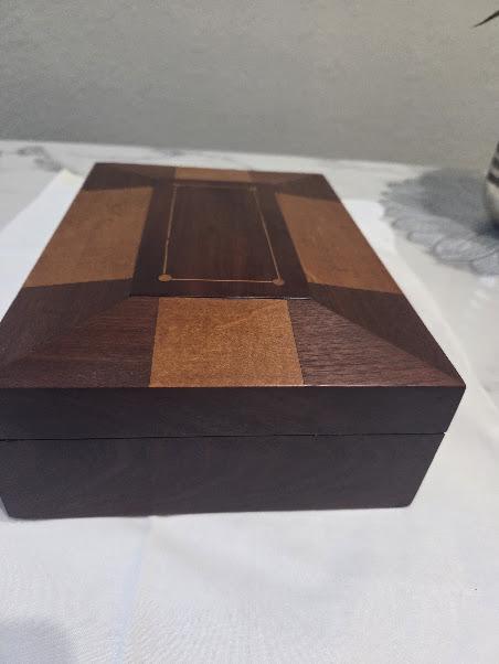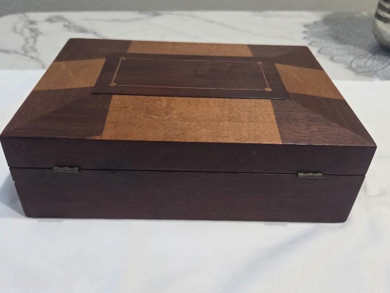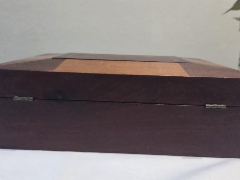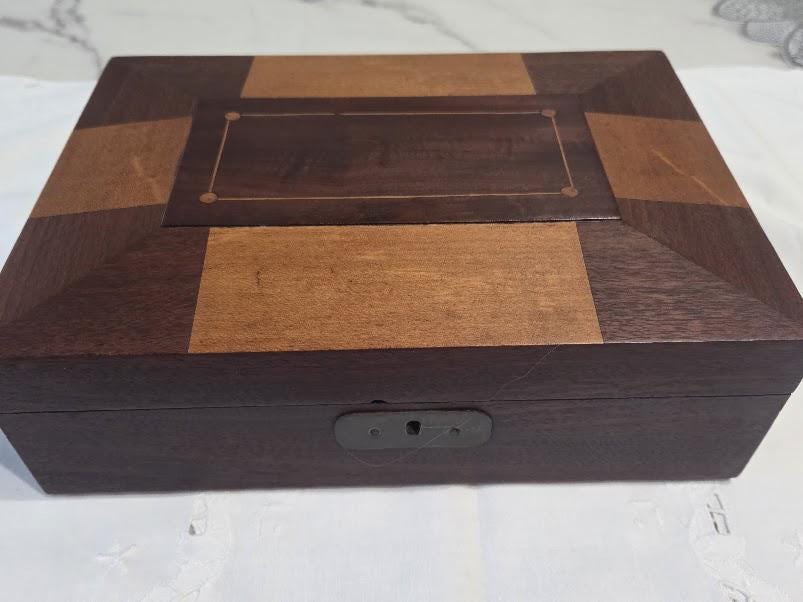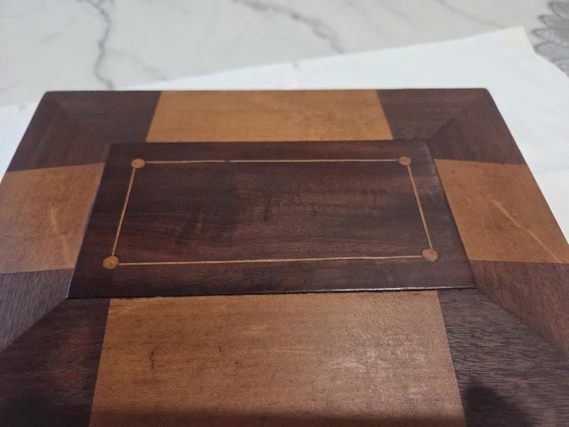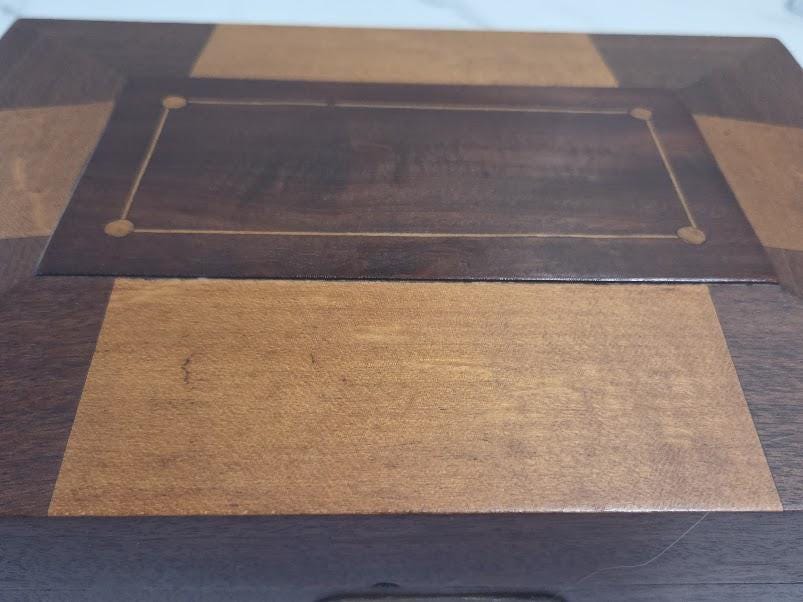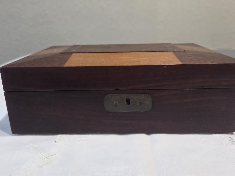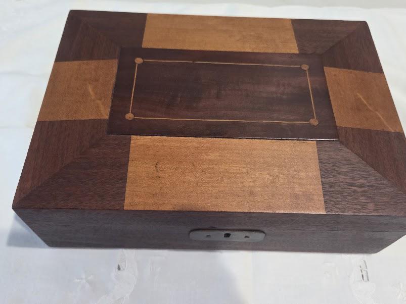 This mixed wood Inlay rectangular box is in very good antique condition.