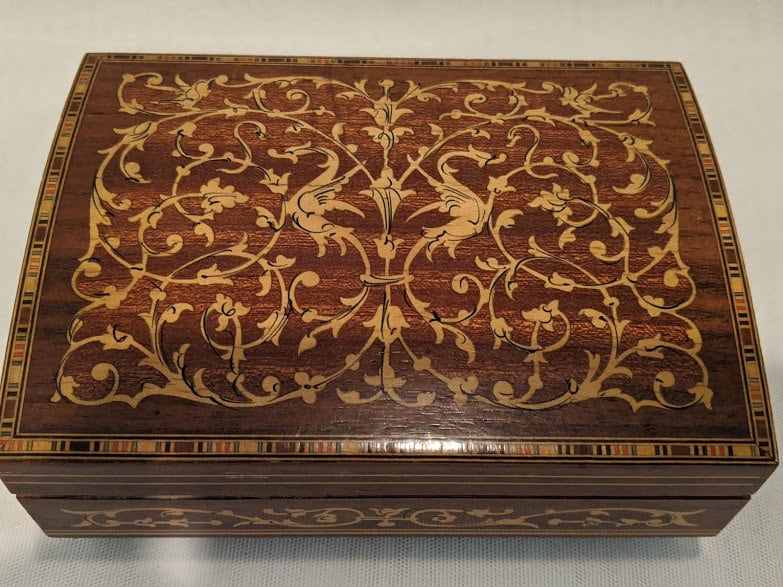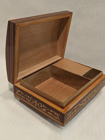 Measures: 6 3/4 inches long....5 inches wide.....2 1/4 inches high.
