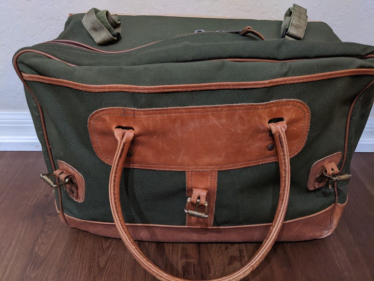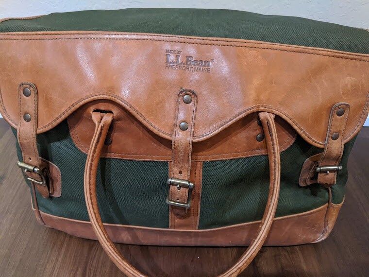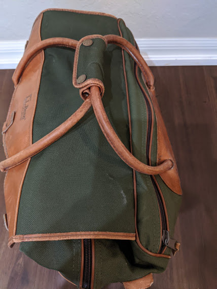 This LL Bean Canvas and leather duffel bag is in very good vintage condition.